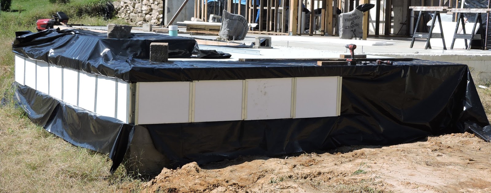 Parenthetically, parts of the umbrella were already in place. The insulated and impervious garage and screened porch floors comprise most of the umbrella on the east side of the house. I will install the rest of the umbrella on the east next year before the concrete walkway to the main entrance and the driveway are placed over it.